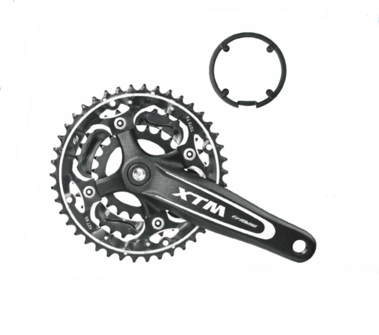 Система HDL Wheel XTM HDL-LFC805 - недорогое решение для начальных и любительских MTB велосипедов. Шатуны системы обладают длинной 170 мм, рассчитаны на каретки с квадратным валом и педали со стандартной резьбой 9/16". Набор звезд имеет диапазон зубьев 22-32-42Т, совместимы они со скоростными трансмиссиями и цепями на 8 скоростей, чейнлайн 50 мм. Система неразборная, BCD малой звезды 64 мм, средней и большой 104 мм. Малая и средняя звезда выполнены из стали, большая из алюминия серии 7075-Т6, шатуны из алюминия, имеют серебристо-черное покрытие. Комплект содержит в себе сборку шатунов со звездой и защитой, без каретки, болтов и педалей.