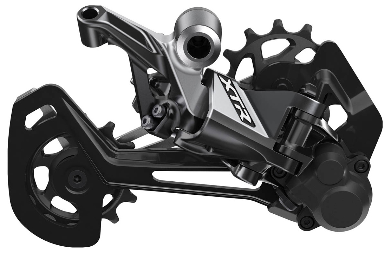 Задний переключатель XTR RD-M9100 был разработан для трансмиссий 1x12 скоростей. У него увеличенные ролики переключателя с 13 зубьями для более плавного хода, и дополнительный упор на рычаге качания, который препятствует появлению шума. Конечно, здесь также используется технология демпфирования Shadow +, где стабилизатор противодействует провисанию, биения и падению цепи. Некоторые детали RD-M9100 выполнены из карбона, снижающего вес. Задний переключатель XTR доступен в двух версиях: с более короткой рамкой (GS) для кассет 10-45Т, и с длинной рамкой (SGS), которая также может работать с кассетами 10-51Т.