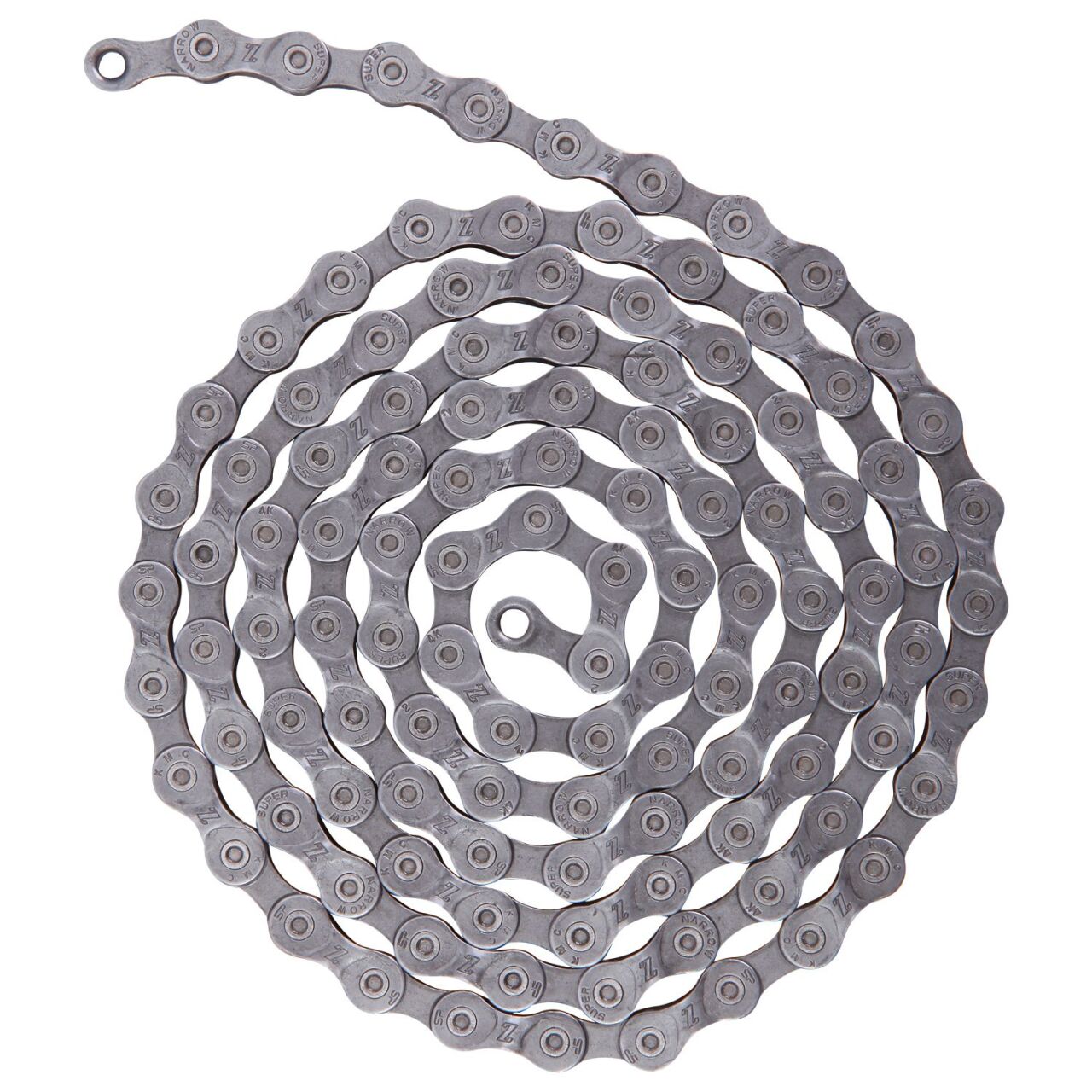 Технологичная цепь KMC Z9 (Z99) — это надежная безвтулочная конструкция, пины с потайной клепкой снизили вес цепи и облегчили работу трансмиссии. Фаски на внутренних пластинах, а также Z-образный профиль внешних пластин улучшили совместимость с различными кассетами и системами передних звезд. Цепь разработана для кассет на 9 звезд, а ее длина составляет 116 звеньев. Все звенья имеют антикоррозийное покрытие. Шаг цепи - 1/2ʺ. Ширина между внутренними звеньями - 11/128ʺ.