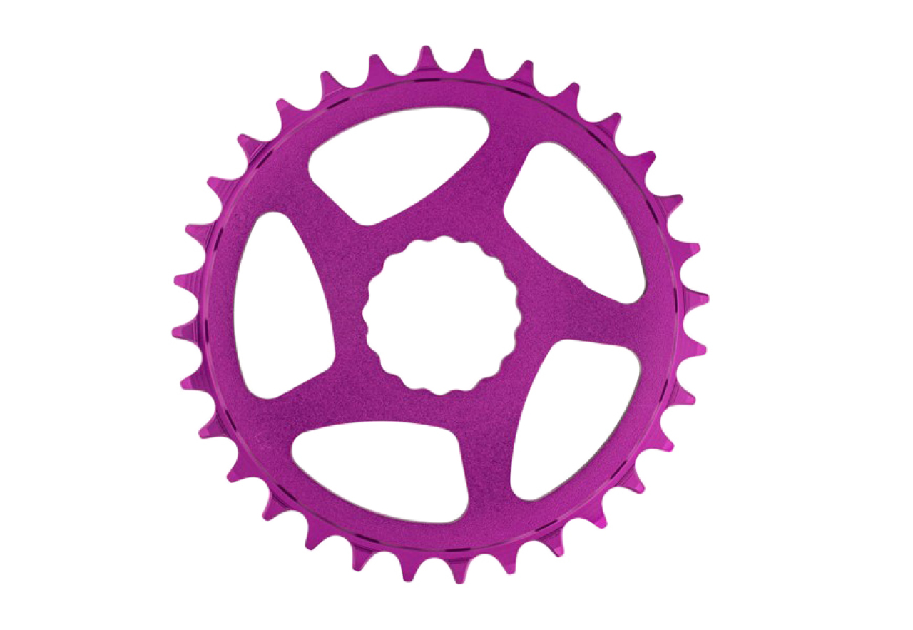 Звезда Race Face Cinch Direct Mount крепится прямо на шатун без «паука», благодаря чему её можно сделать действительно маленькой – размер данной модели составляет всего 28 зубьев. Крепкая и жесткая звезда из алюминиевого сплава 7075-T6 отлично передаст усилие от вращения педалей, а зубья переменной толщины не позволят цепи спадать, даже без использования успокоителя.